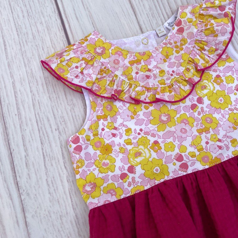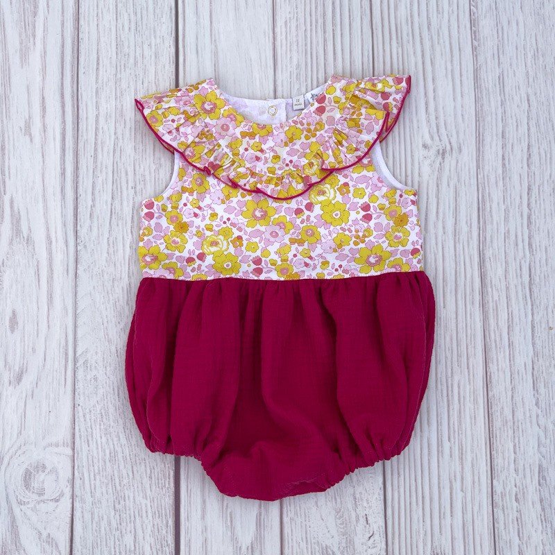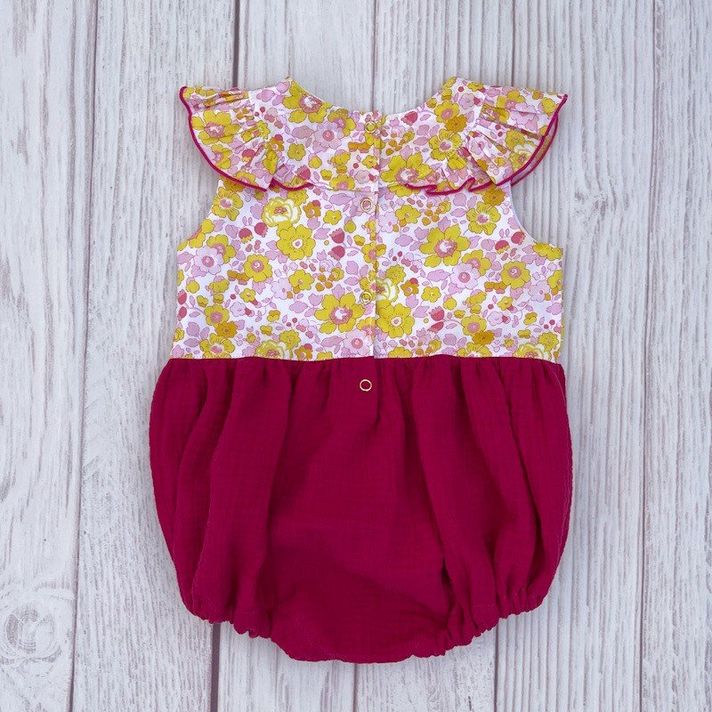 Barboteuse Clarisse gaze et Liberty Betsy strawberry lemonade