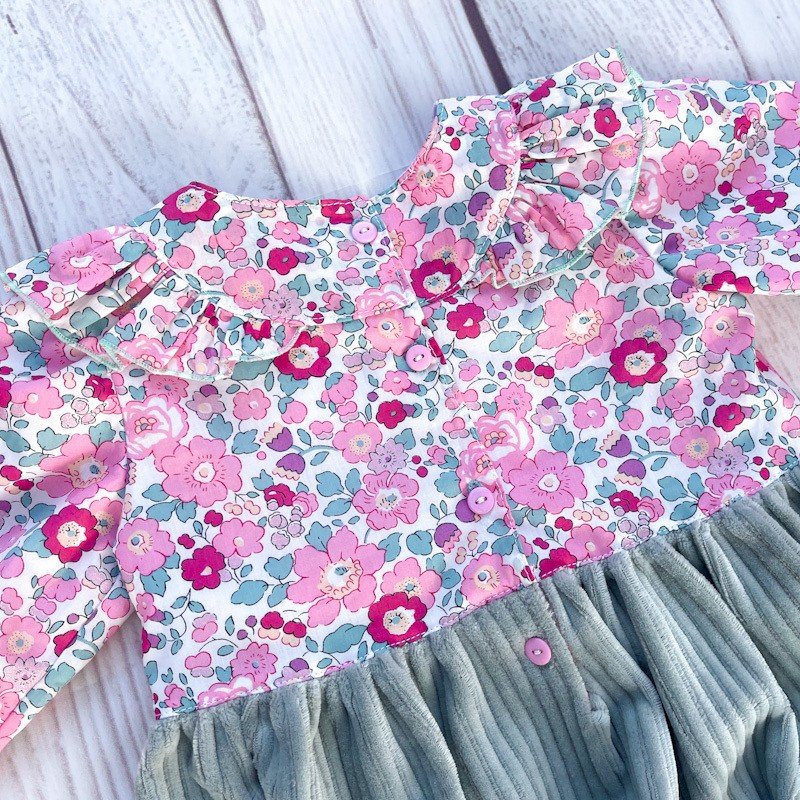 Barboteuse Clarisse velours et Liberty Exclu France/Belgique