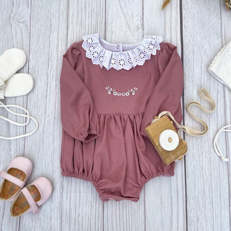 Barboteuse en mélange lin/viscose entièrement doublée de voile de coton