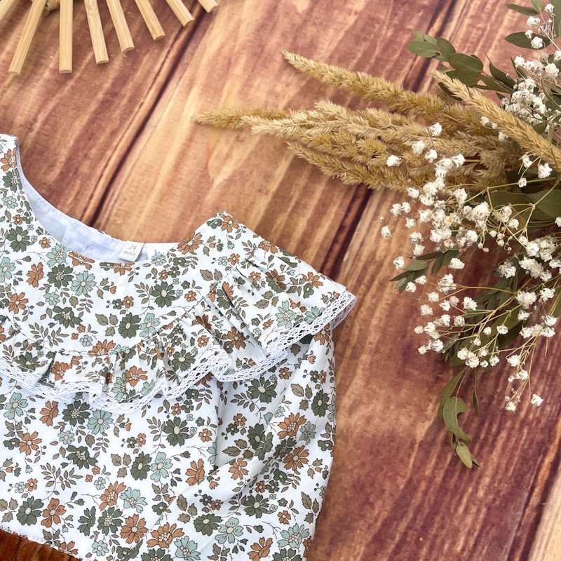 Barboteuse 2 ans velours camel et liberty popeline capel