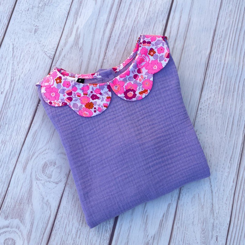Blouse en gaze de coton lilas et Liberty of London Betsy rose rare