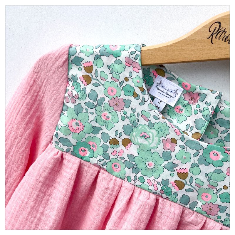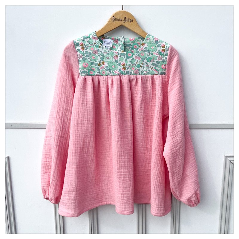Blouse en gaze de coton rose bonbon et Liberty of London Exclusif USA Betsy seafoam