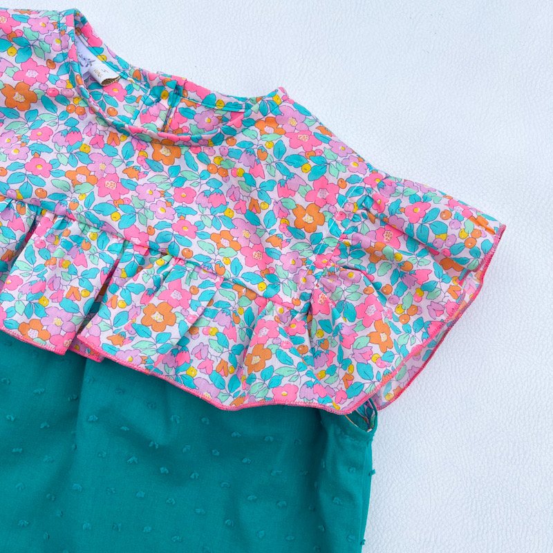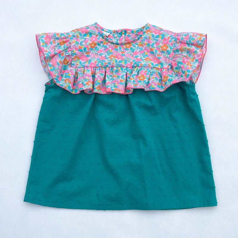 Blouse Isaure plumetis émeraude et liberty Betsy berry delight