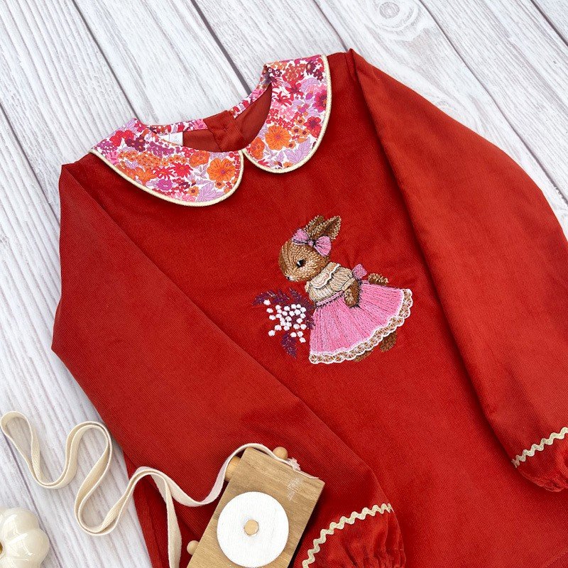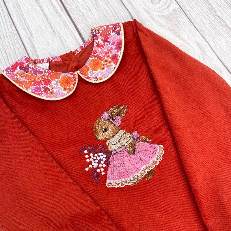 Broderie ultra détaillée inspiration Beatrix Potter motif "Madame Lapin"