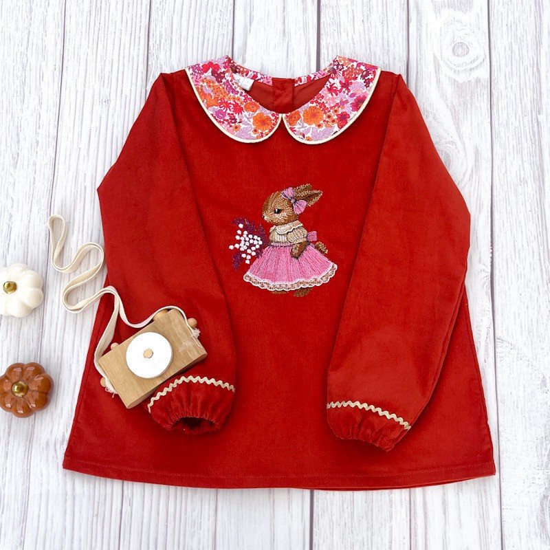 Blouse en velours cotelé rouille à manches longues bouffantes
