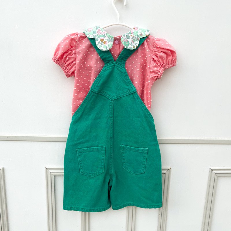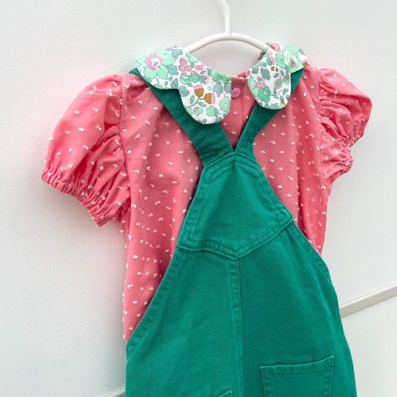 Ensemble Blouse pétale et salopette brodée 4 ans