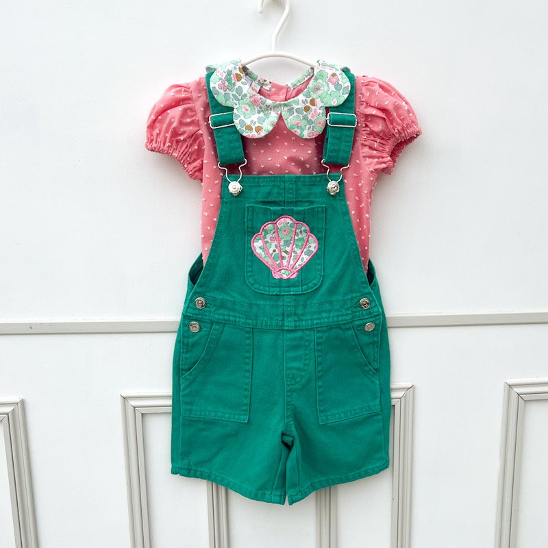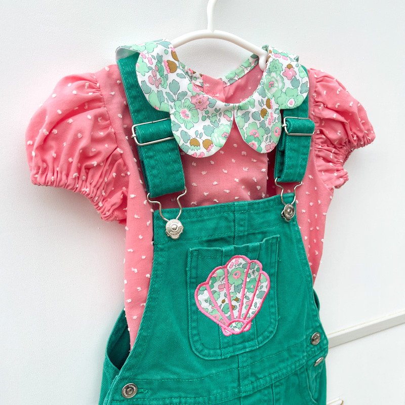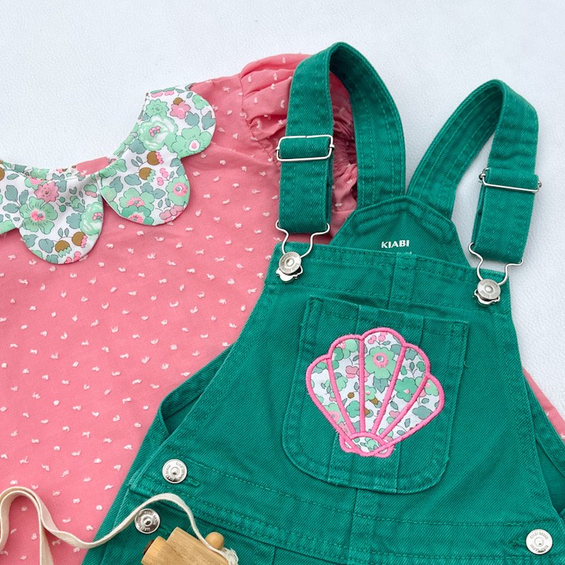 salopette Kiabi à bretelles réglables avec poche customisée broderie coquillage assortie