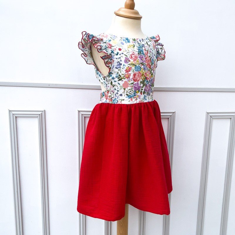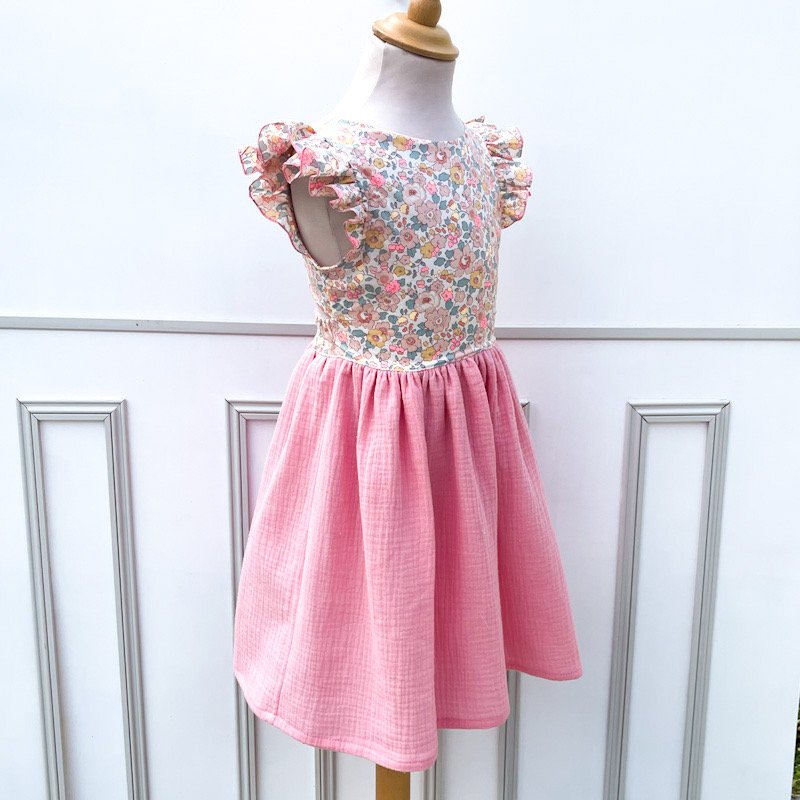 Le corsage ainsi que les manches sont en liberty et la jupe en gaze de coton