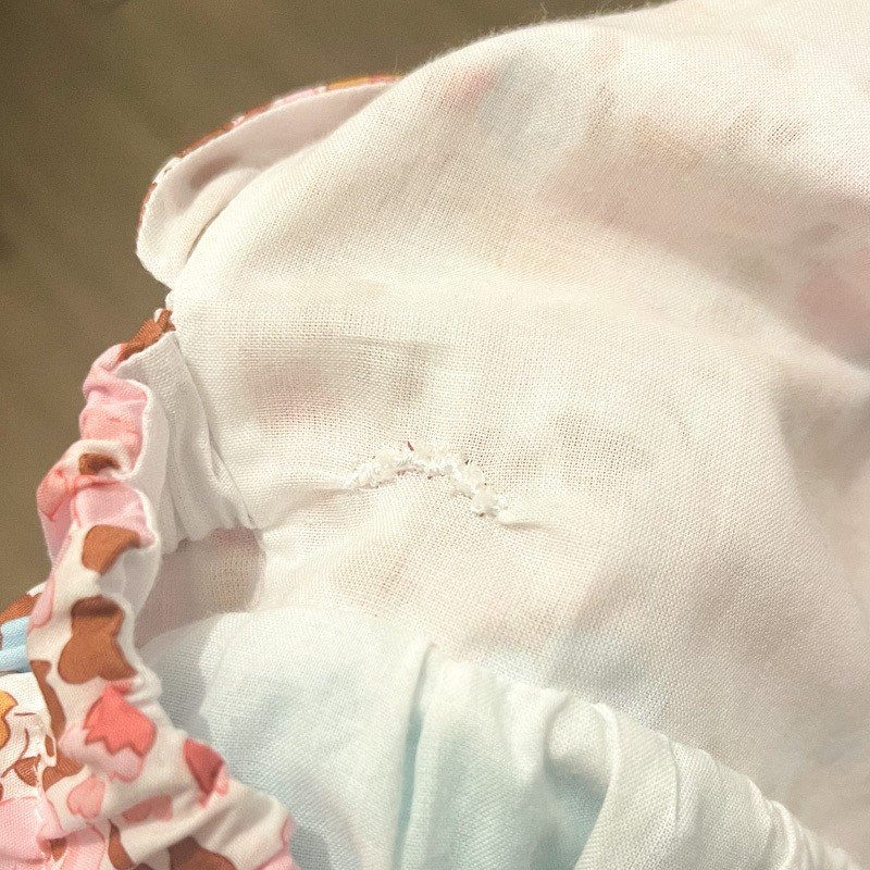 Un petit coup de ciseau malheureux dans la doublure du corsage qui a été racommodé.