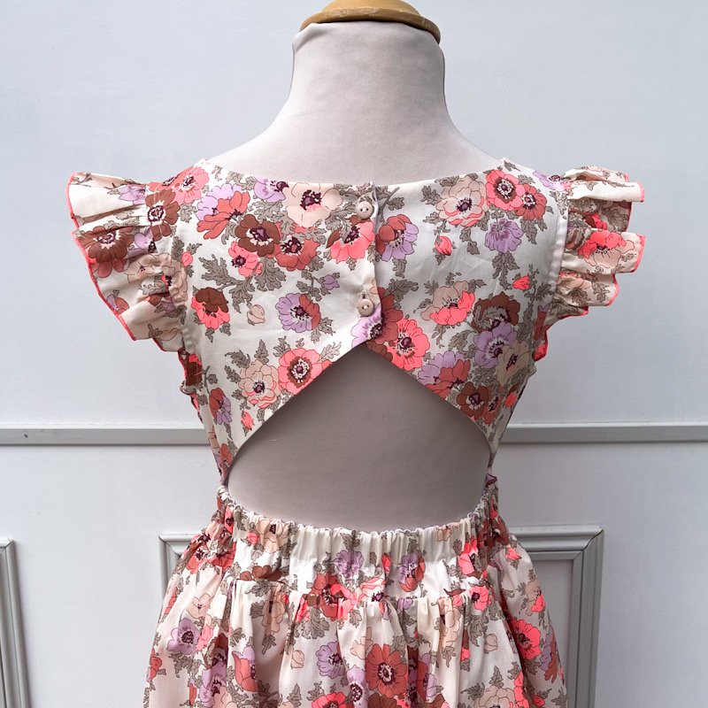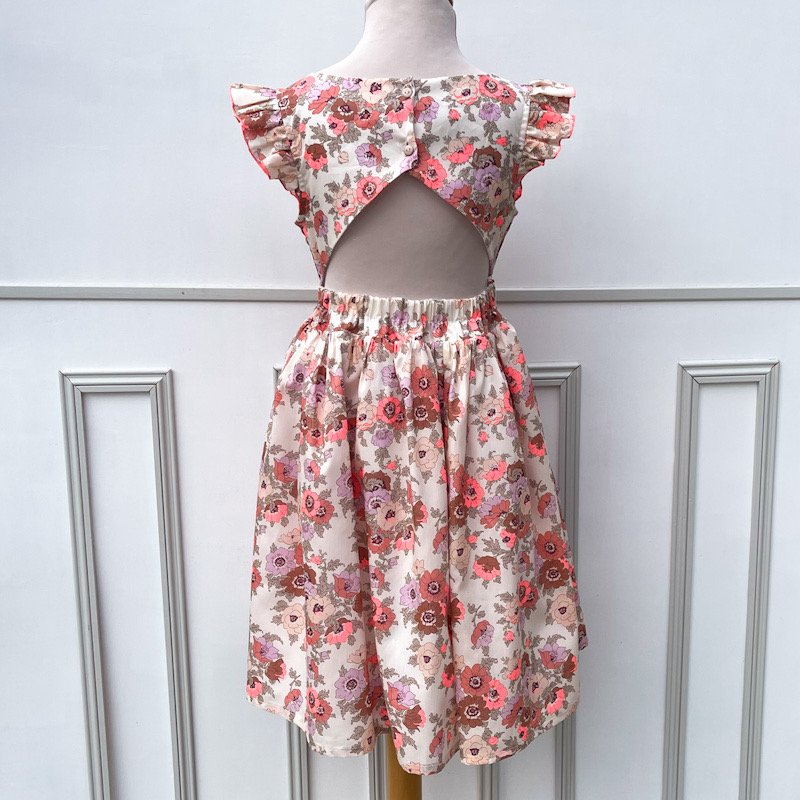 La robe Adèle: un dos nu à croquer, une coupe élégante et confortable. Elle convient autant à une ballade en famille qu'à une cérémonie.