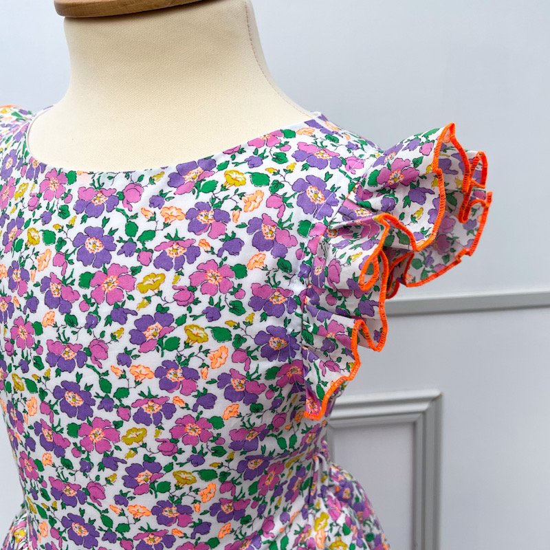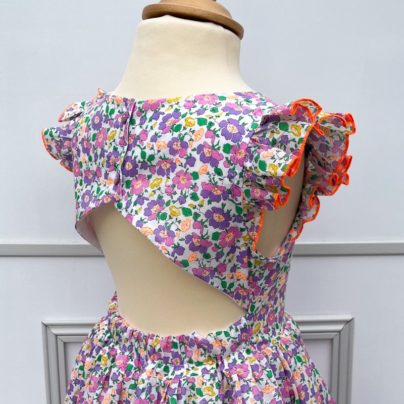 Robe dos nu liberty Mrs Stoneley violet fluo