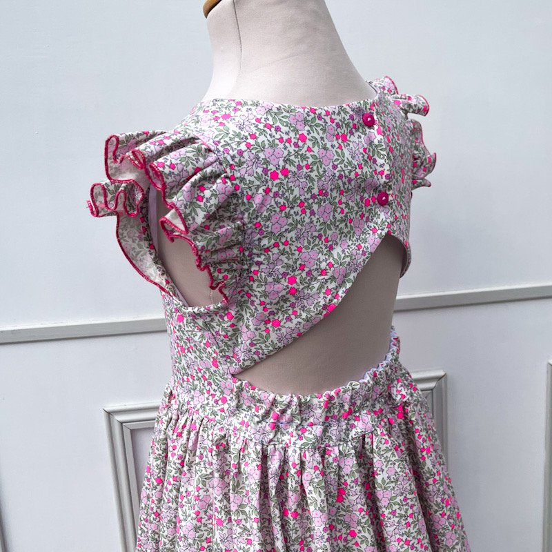 Robe dos nu popeline de coton fleurie rose fluo