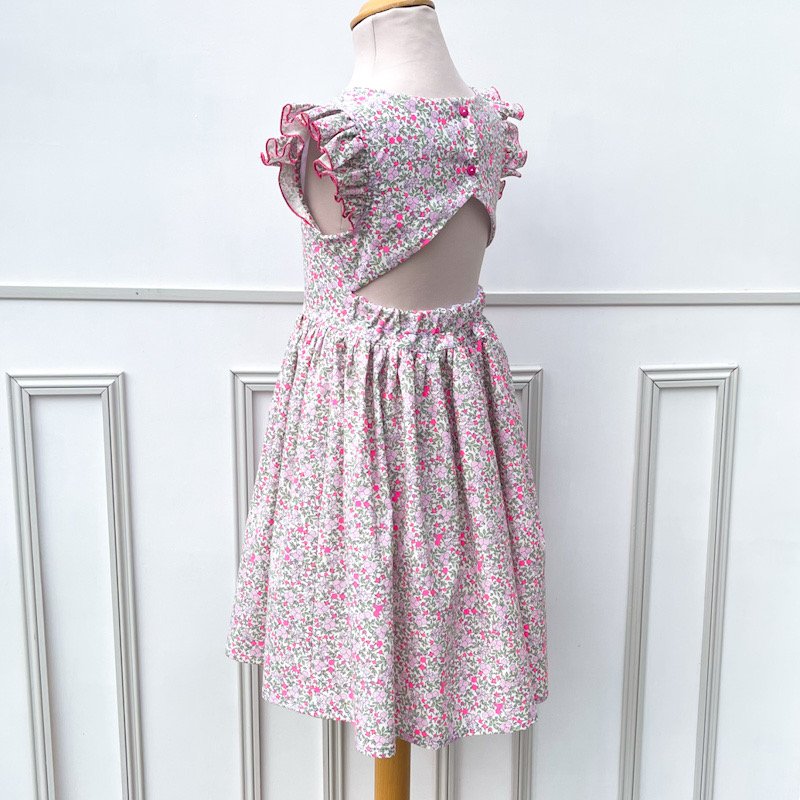 La robe Adèle: un dos nu à croquer, une coupe élégante et confortable. Elle convient autant à une ballade en famille qu'à une cérémonie.
