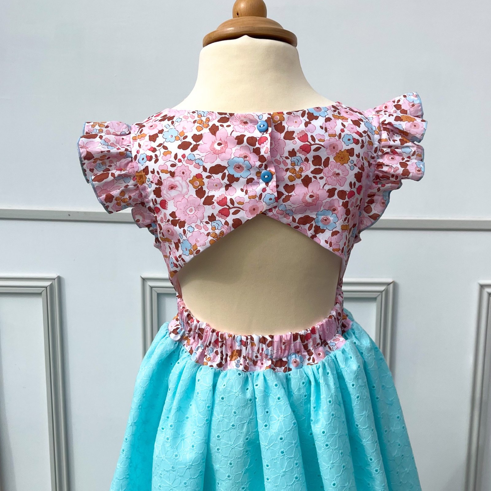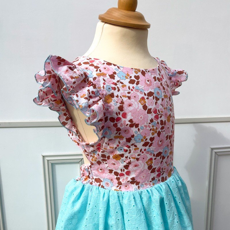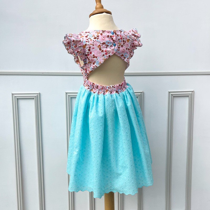 Robe dos nu liberty Betsy écureuil et broderie anglaise festonnée
