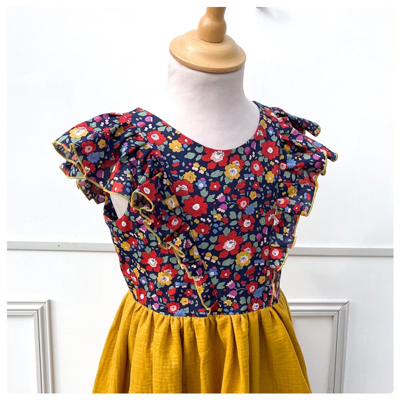 Il est possible d'adapter le modèle aux mensurations de votre enfant, par exemple en faisant une largeur de buste de 6 ans mais une longueur de robe de 7 ans. Dans ce cas, sélectionnez la taille la plus grande et mettez-moi vos indications dans l'onglet "remarques"