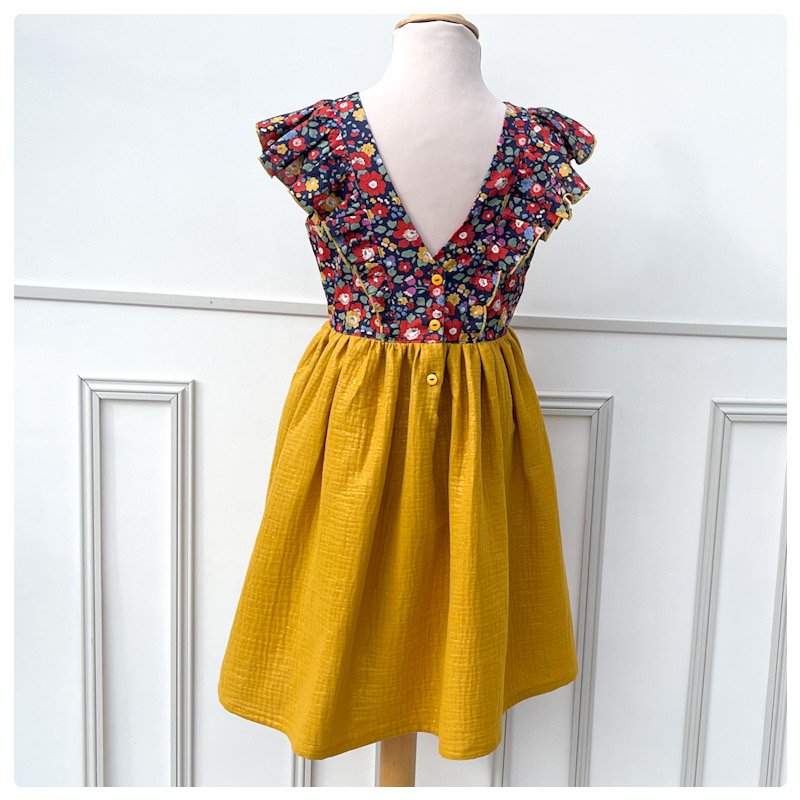Il est possible d'adapter le modèle aux mensurations de votre enfant, par exemple en faisant une largeur de buste de 6 ans mais une longueur de robe de 7 ans. Dans ce cas, sélectionnez la taille la plus grande et mettez-moi vos indications dans l'onglet "remarques"