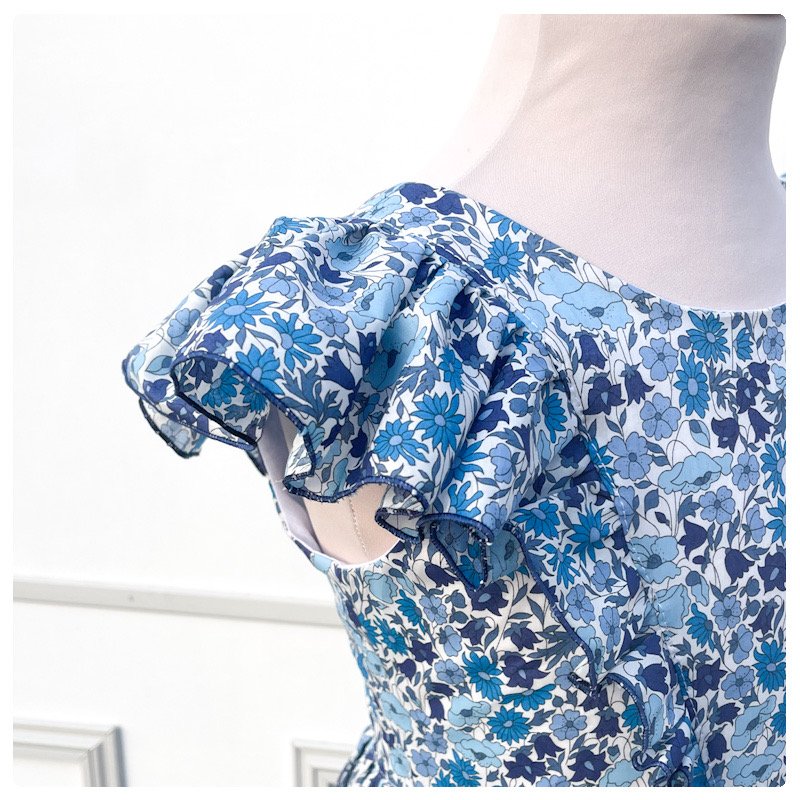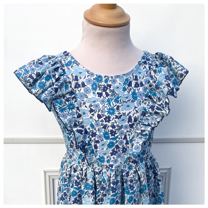 Le corsage est en Liberty tana lawn entièrement doublé de voile de coton. Pour la jupe vous pouvez choisir l'option avec ou sans doublure.
