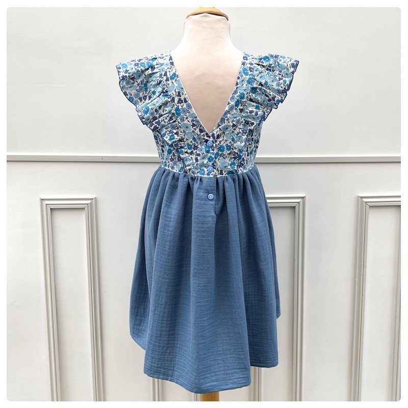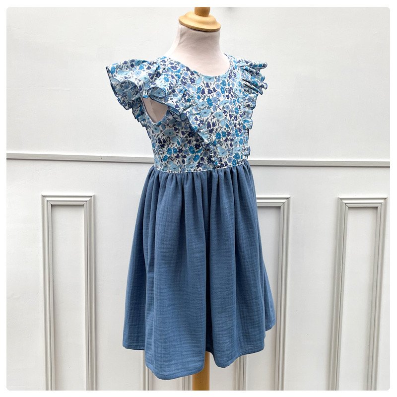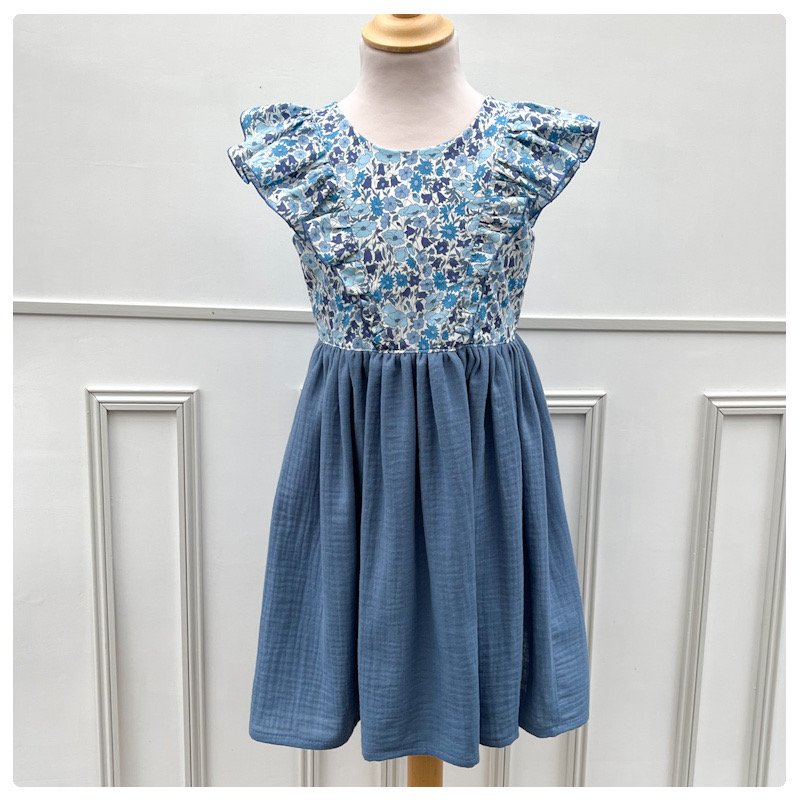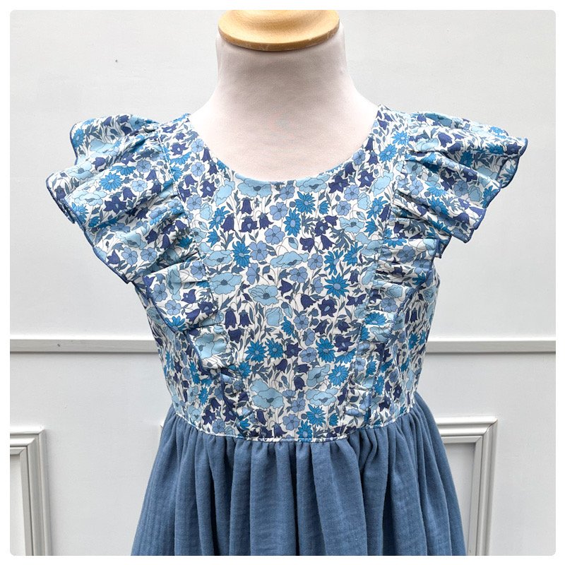 Robe Alba Liberty Poppy & Daisy santorin et gaze pailletée bleu orage