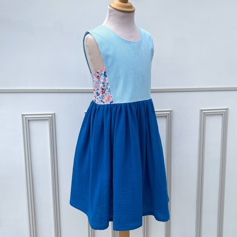 Robe Candice 8 ans Liberty Betsy Betsy Piscine, popeline rayée et gaze de coton bleu électrique