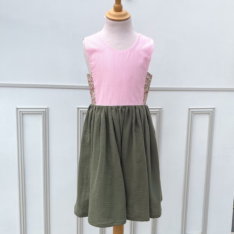 Robe Candice 8 ans Liberty Poppy&Daisy pompadour, popeline rayée blanche et rose