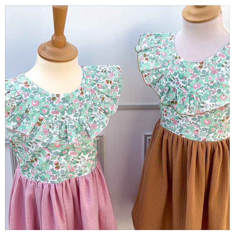 Il est possible d'adapter le modèle aux mensurations de votre enfant, par exemple en faisant une largeur de buste de 6 ans mais une longueur de robe de 7 ans. Dans ce cas, sélectionnez la taille la plus grande et mettez-moi vos indications dans l'onglet "remarques"