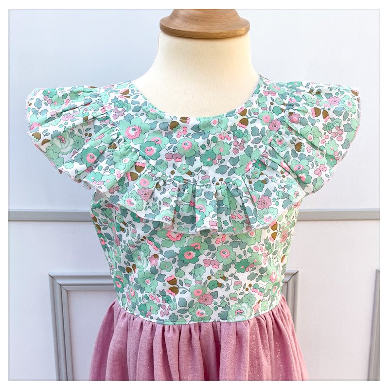 Robe Clarisse liberty Betsy seafoam (exclu USA) et gaze de coton pailletée rose clair