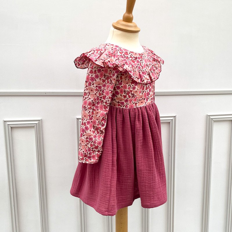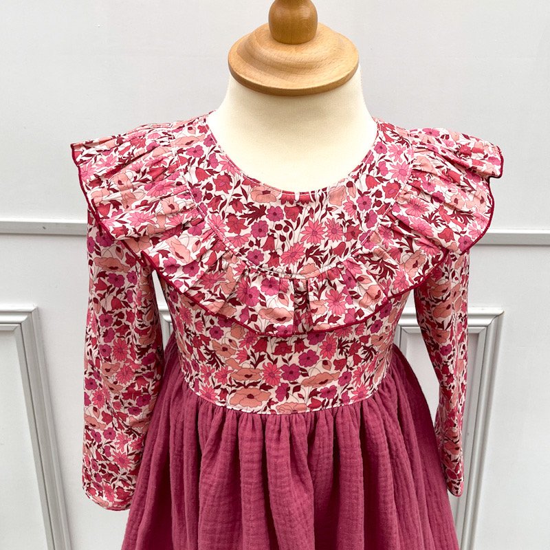 Robe Clarisse liberty Poppy and daisy framboise et gaze de coton framboise