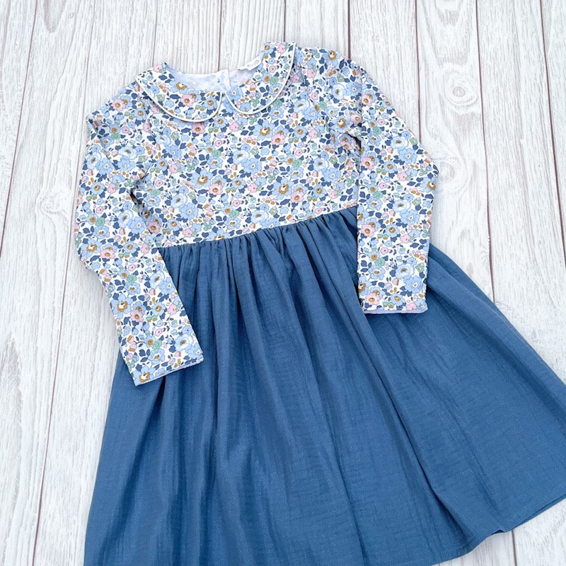 Robe liberty Betsy denim et gaze pailletée bleu océan