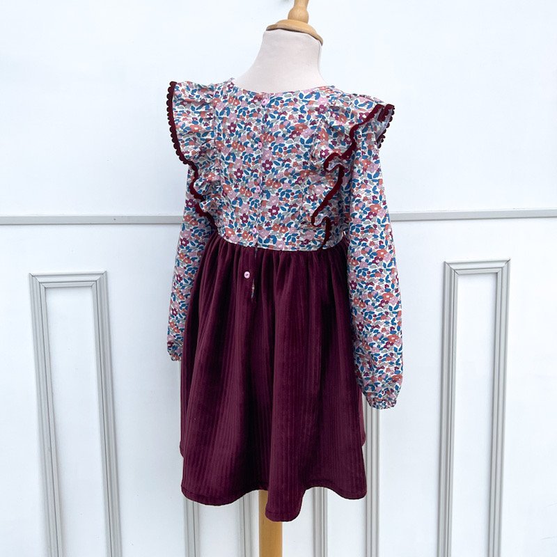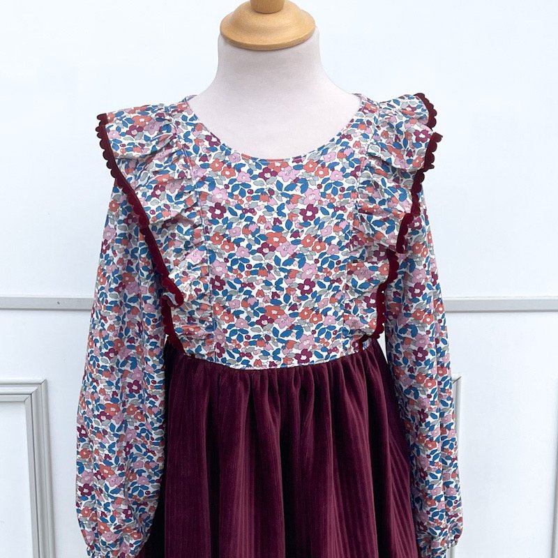 Robe Serena Liberty Berry églantier et velours griotte