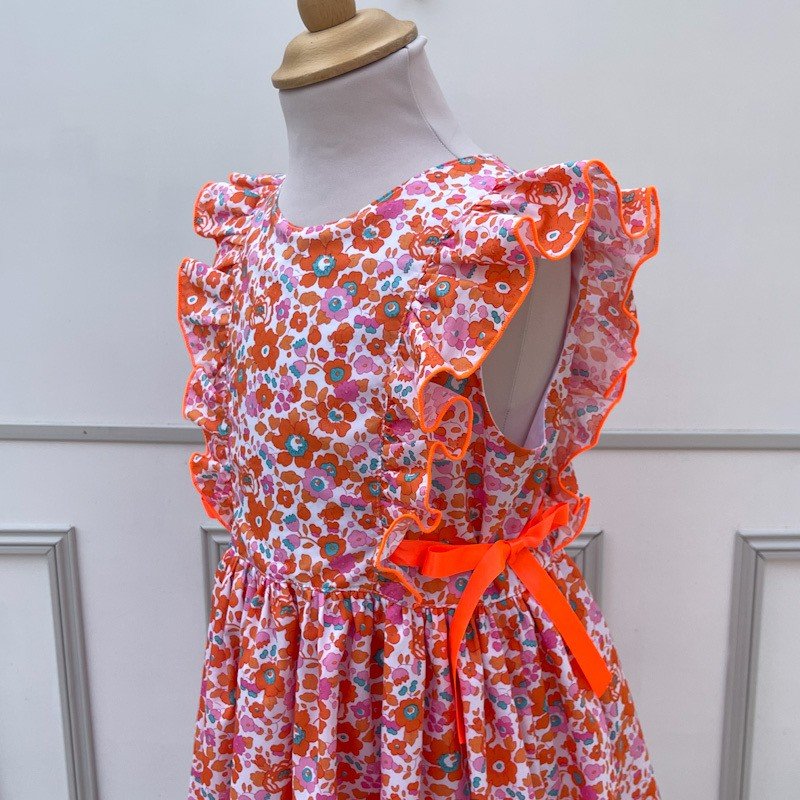 D'adorables noeuds en satin orange fluo viennent orner les cotés et te permettent d'ajuster la robe
