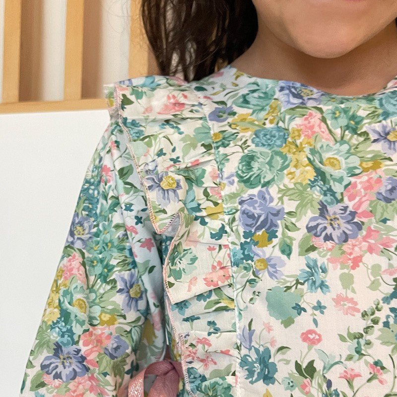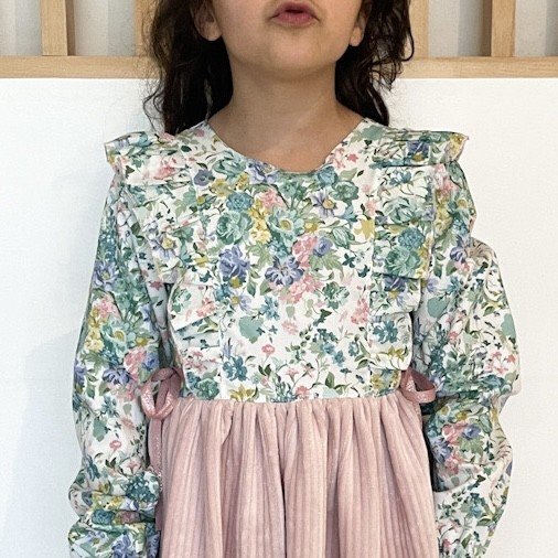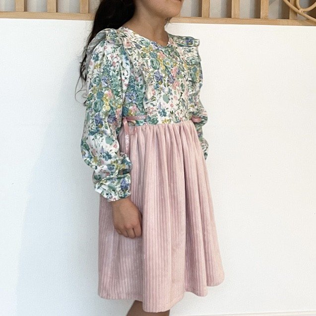 Robe Serena Liberty Bridgerton Bouquet parade canard et velours rose layette