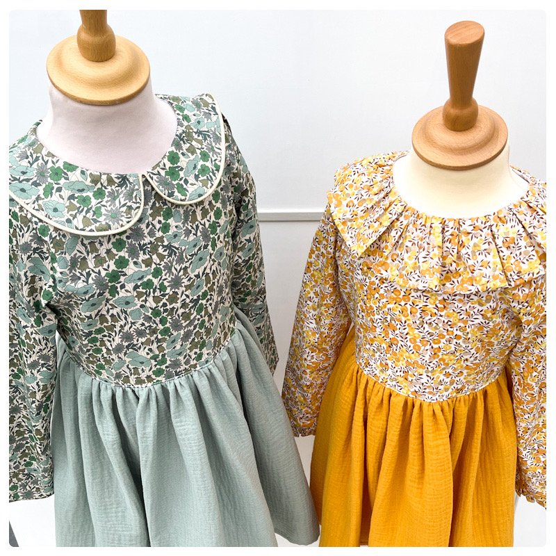 Il est possible d'adapter le modèle aux mensurations de votre enfant, par exemple en faisant une largeur de buste de 6 ans mais une longueur de robe de 7 ans. Dans ce cas, sélectionnez la taille la plus grande et mettez-moi vos indications dans l'onglet "remarques"