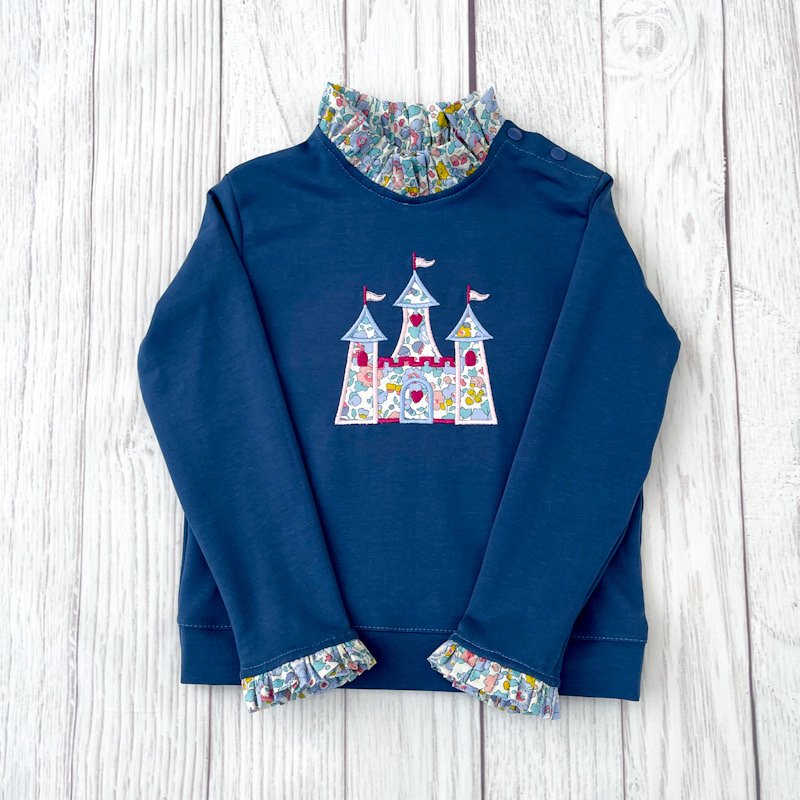 Sweat léger bleu océan et liberty Betsy periwinkle broderie chateau