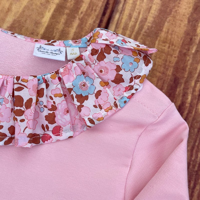 Sweat léger rose layette et Liberty of london Betsy écureuil