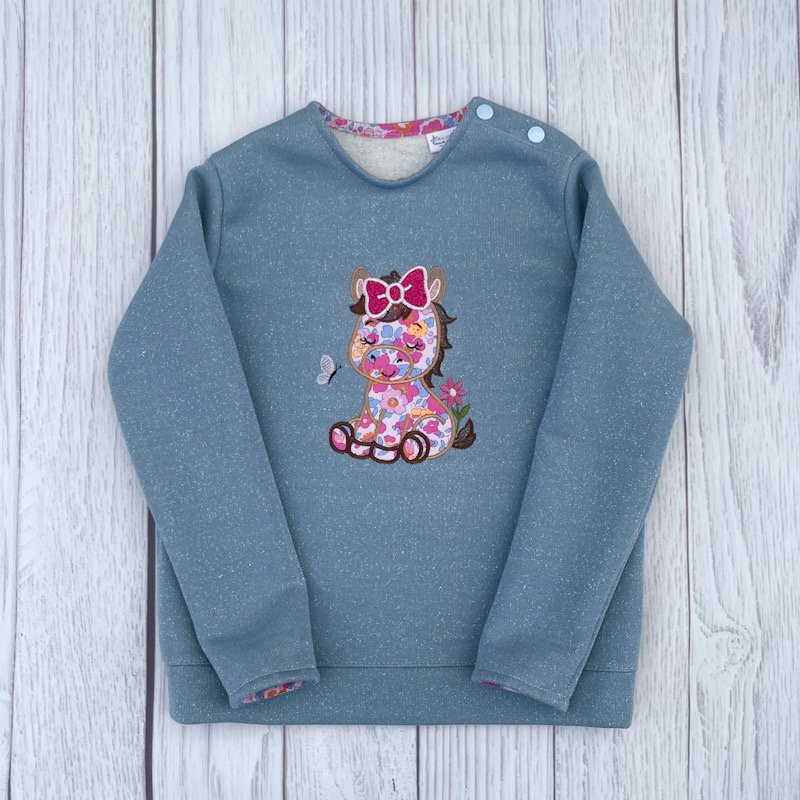 Sweat molletonné pailleté bleu ciel et Liberty of london Betsy Malibu