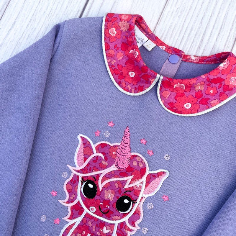 Motif licorne girly en liberty et broderie