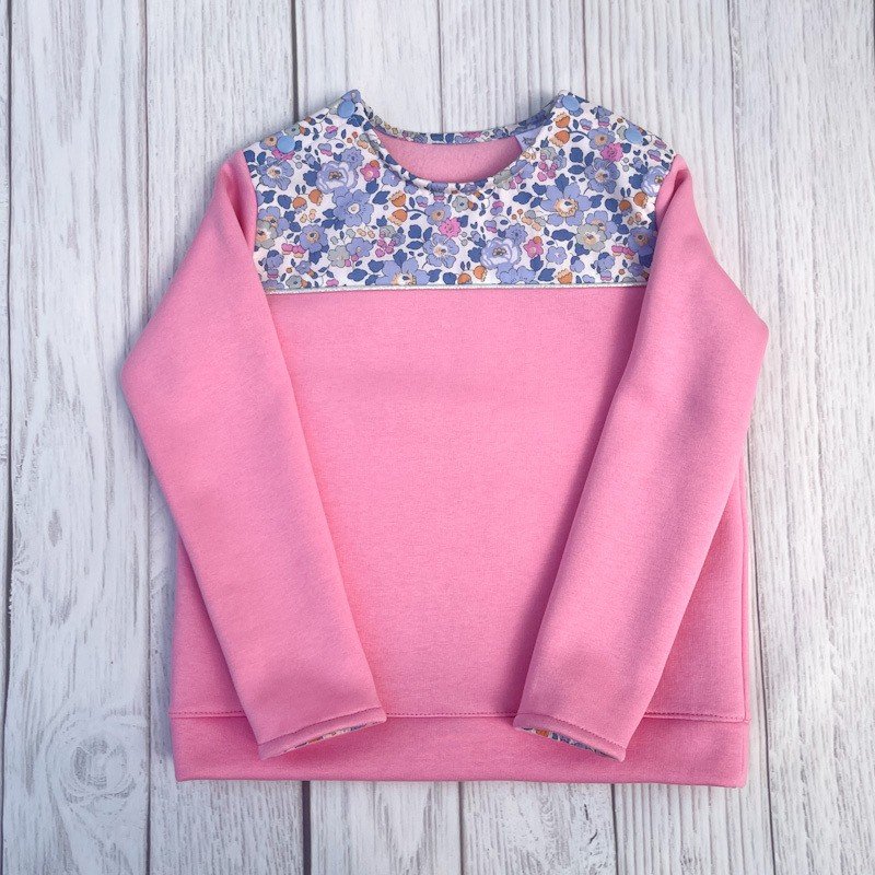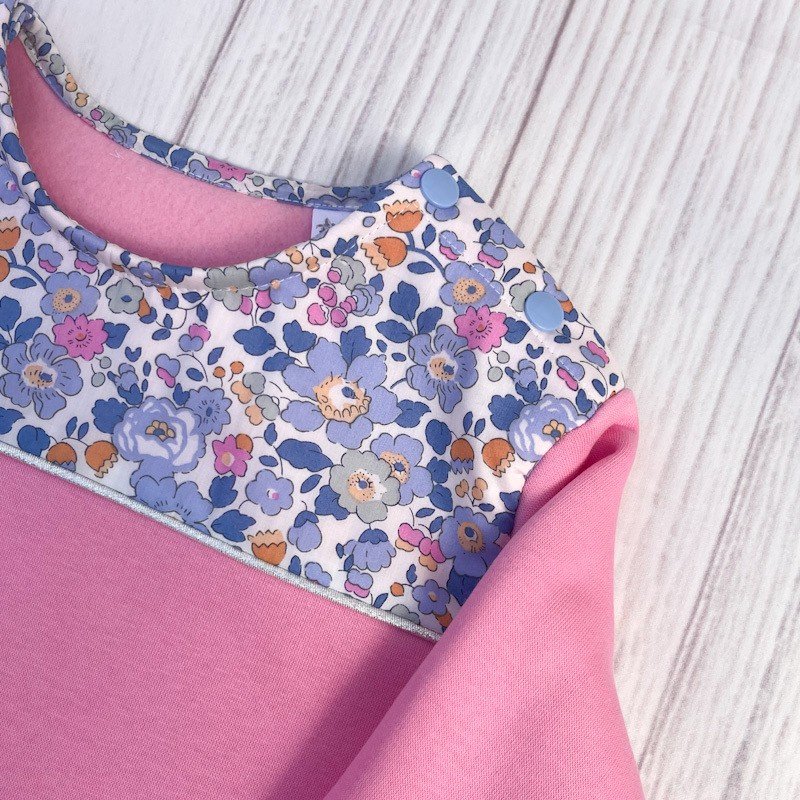 Sweat molletonné rose bonbon et Liberty of london Betsy lavender (exclu USA)