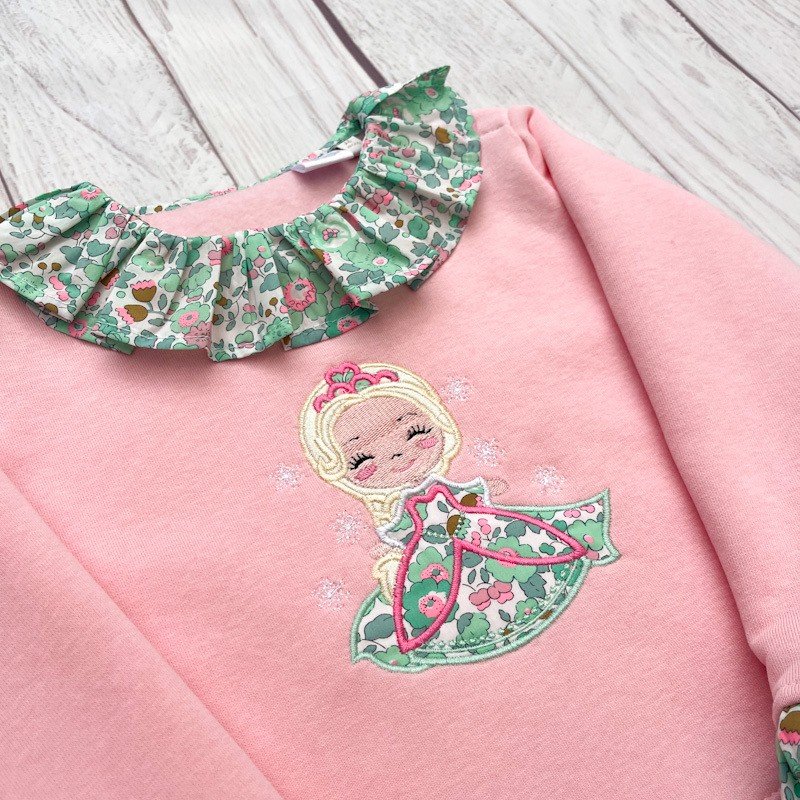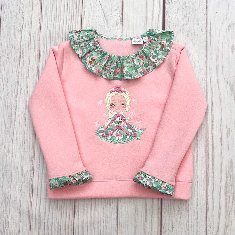 Sweat molletonné rose layette et liberty Betsy seafoam princesse Belle