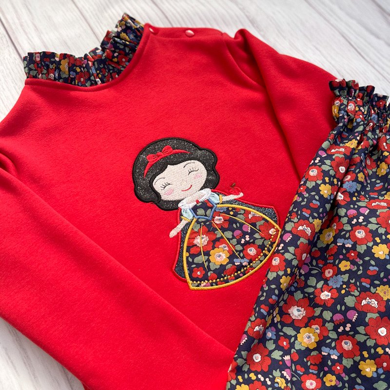 Motif Blanche neige en liberty et broderie