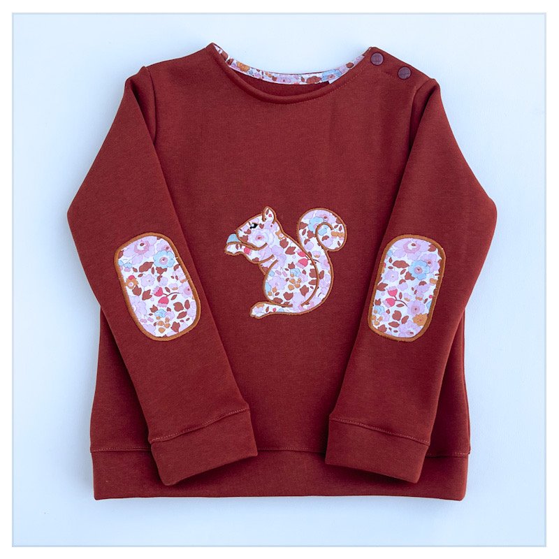 Sweat molletonné terracotta pailleté et Liberty of london Betsy écureuil
