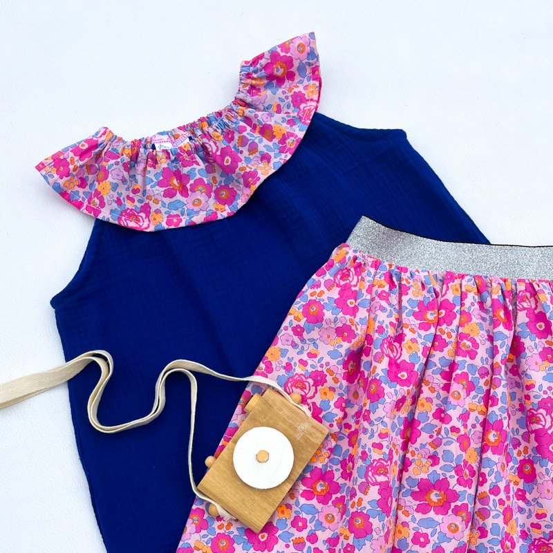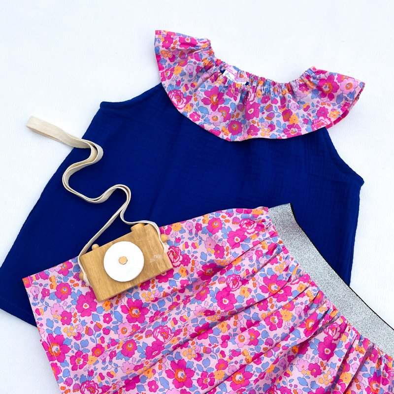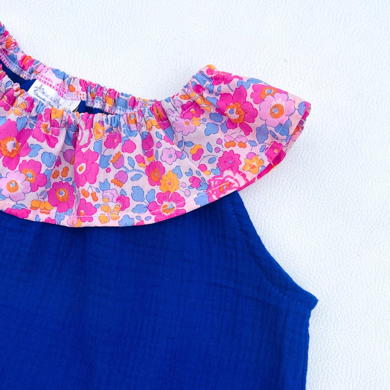 Top à col élastique en gaze de coton bleu électrique et liberty of London Betsy Malibu (exclu USA)