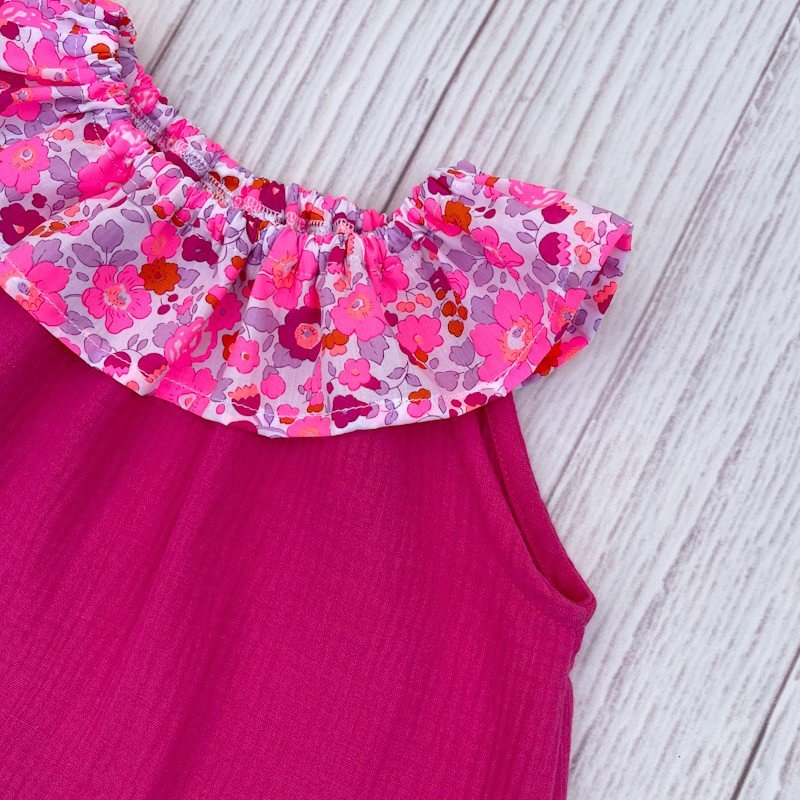 Top à col élastique en gaze de coton rose fushia peps et liberty of London Betsy rose rare