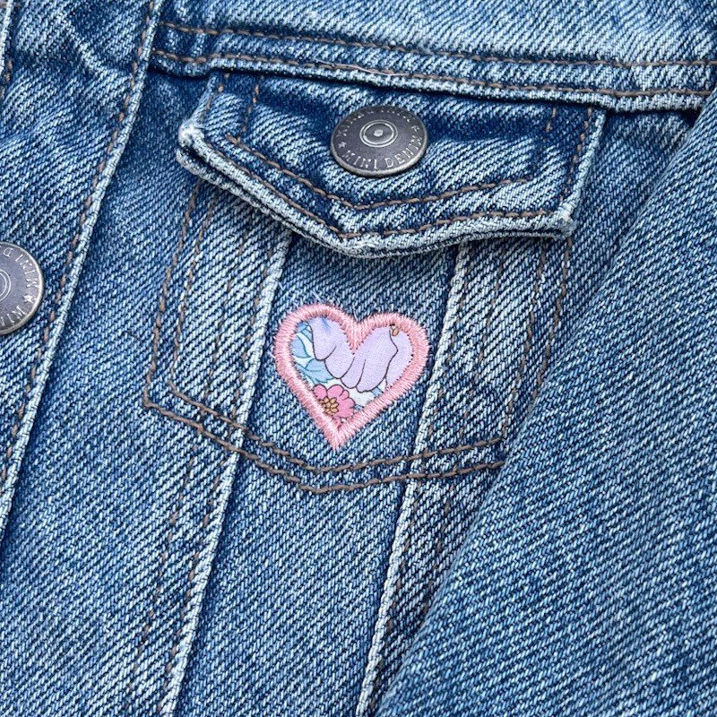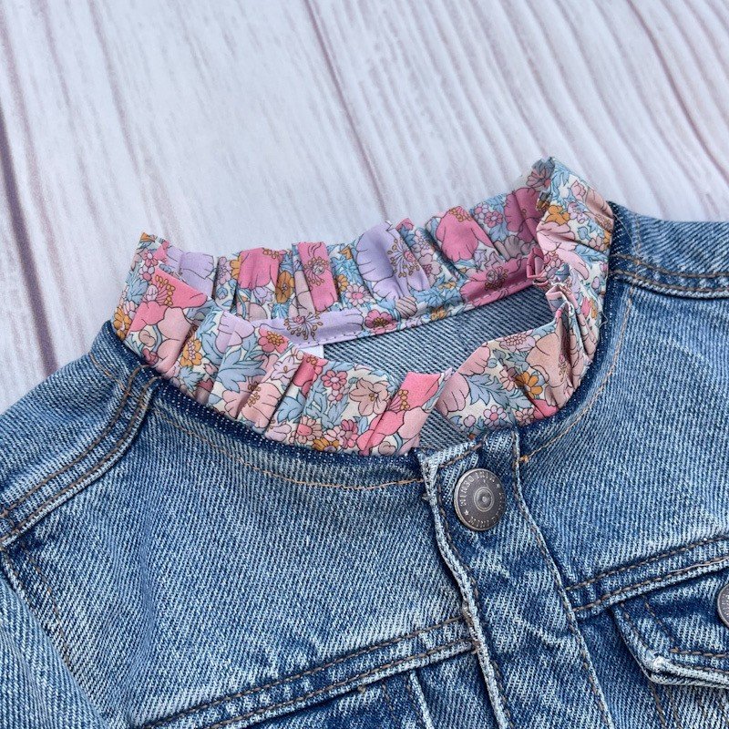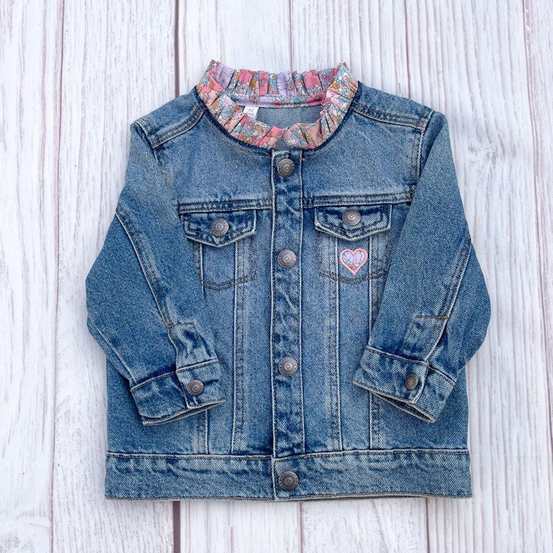 Ajout d'un col victorien en Liberty of London et broderie d'un coeur sur la poche avant