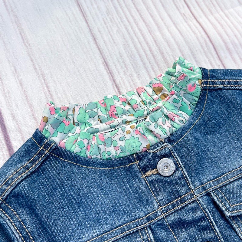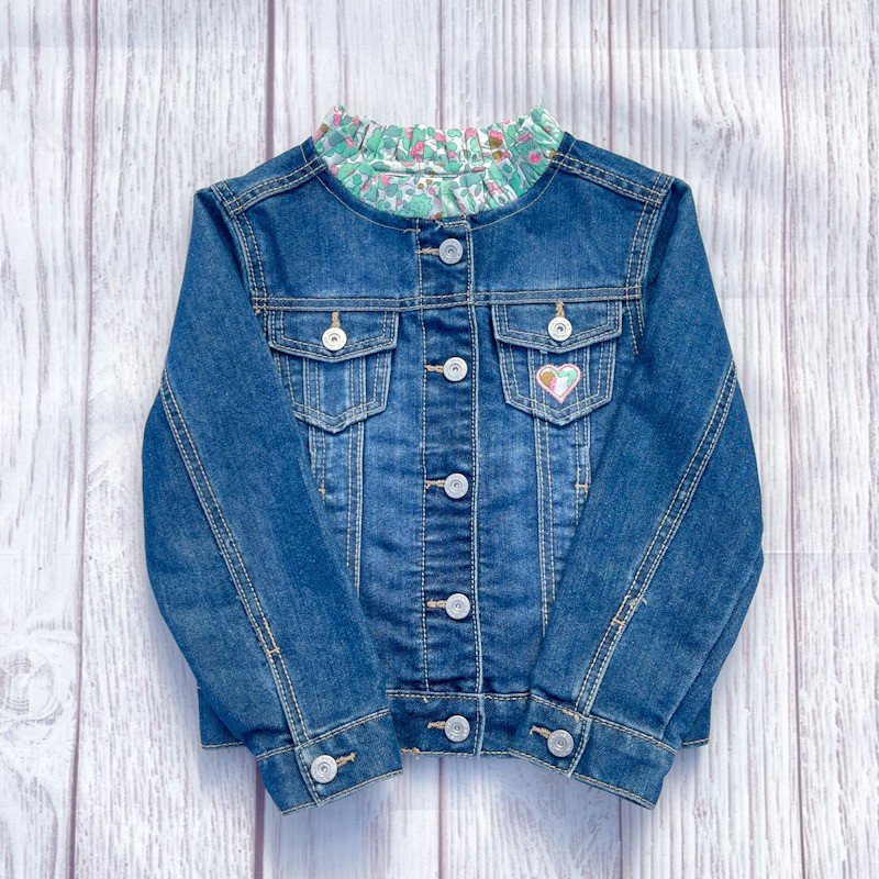 Ajout d'un col victorien en Liberty of London et broderie d'un coeur sur la poche avant