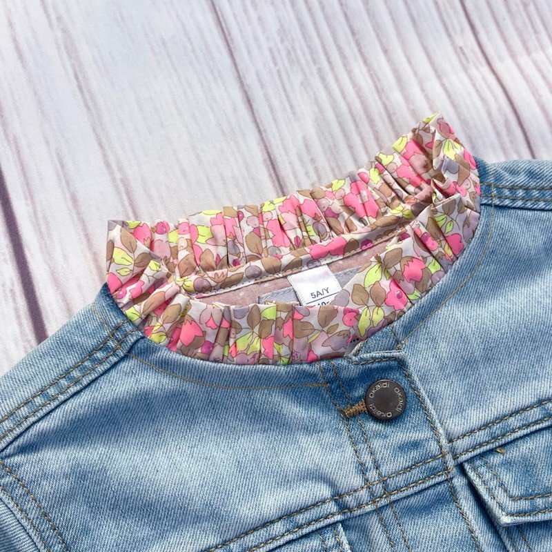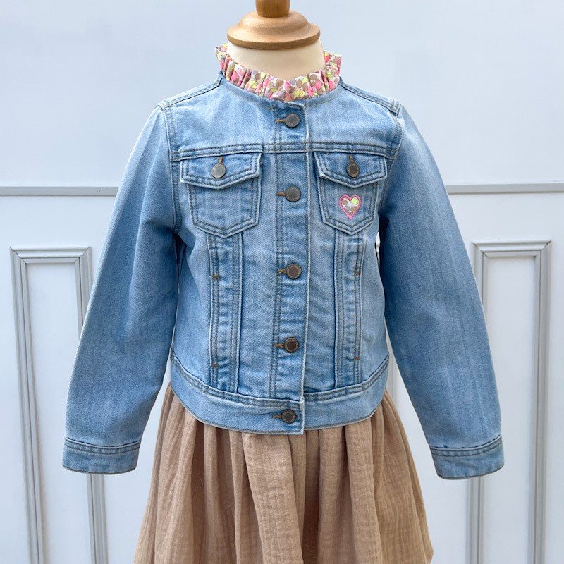 Ajout d'un col victorien en Liberty of London et broderie d'un coeur sur la poche avant