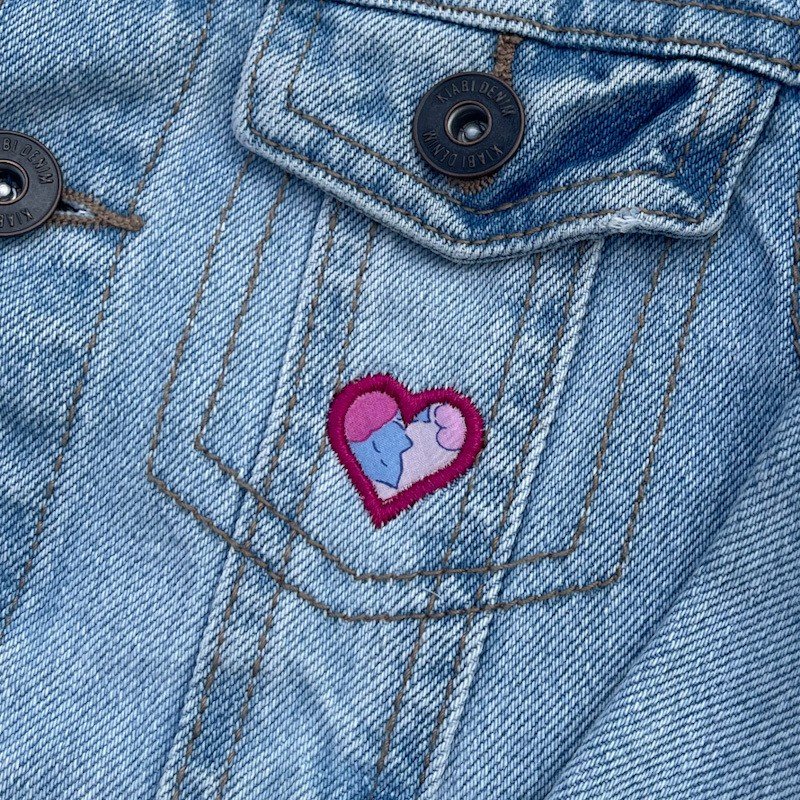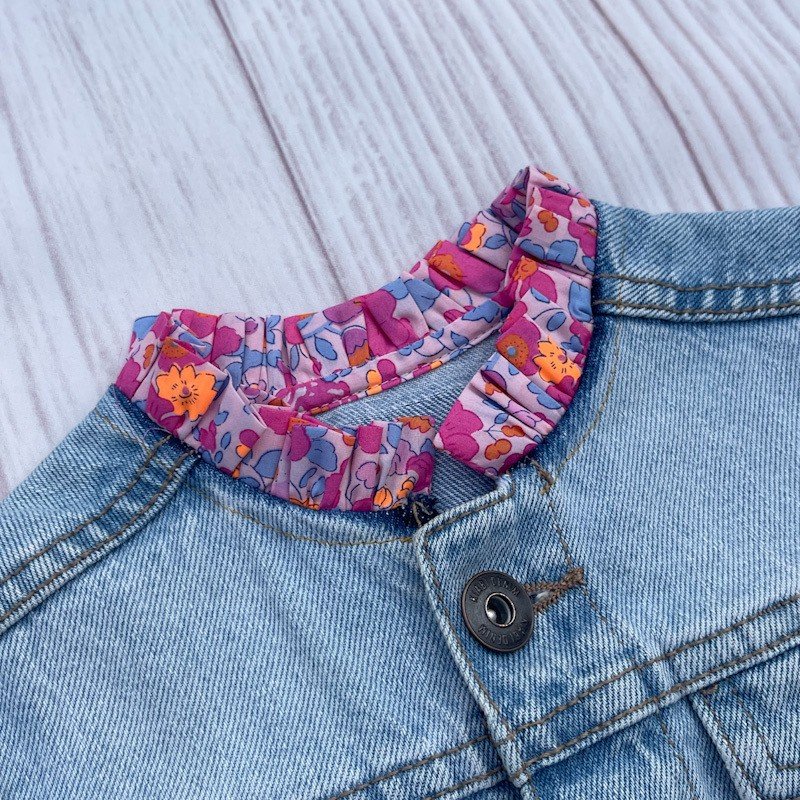Ajout d'un col victorien en Liberty of London et broderie d'un coeur sur la poche avant